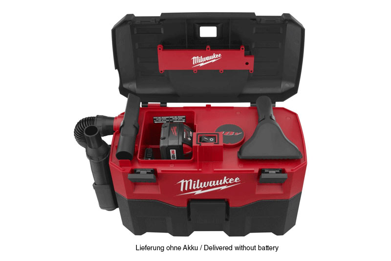 For non-toxic and non-flammable liquids / High-quality washable CLEAN STREAM® filter captures 99.7 % of all dust particles / With integrated blow-out function / Wet/dry vacuuming without filter change / Handy case design enables easy transportation and storage / 100% system-compatible with the Milwaukee® M18 product range (18V cordless gun) / Scope of delivery: Filter, 1.8 m suction hose, crevice nozzle and coarse dirt nozzle / Attention! Device is supplied without battery and charger. / Technical data / Capacity 7.5 l / Weight 5.4 kg / High-quality washable CLEAN STREAM® filter captures 99.7 % of all dust particles / With integrated blow-out function / Wet/dry vacuuming without filter change / Handy case design enables easy transport and storage / 100% system-compatible with the Milwaukee® M18 product range (18V cordless gun) / Scope of delivery: Filter, suction hose 1.8 m, crevice nozzle and coarse dirt nozzle / Attention! Device is supplied without battery and charger. / Technical data / Capacity 7.5 l / Weight 5.4 kg / Air flow rate (l/min) 1246 / Max. Vacuum (mbar) 80 / Hose diameter (mm) 31.5 / 41.7 / Hose length (m) 1.8 / / Voltage (V) 18